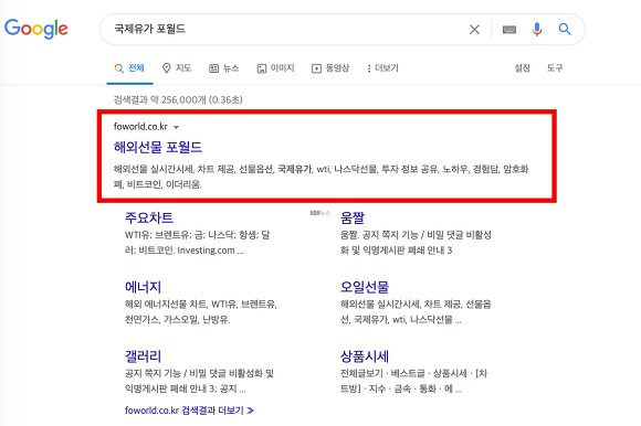 일단 해당 홈페이지를 접속해야 하는데 본인이 사용한 검색 사이트에서 국제유가 포월드 검색하면 됩니다. 그러면 해외선물 포월드 확인할 수 있네요.