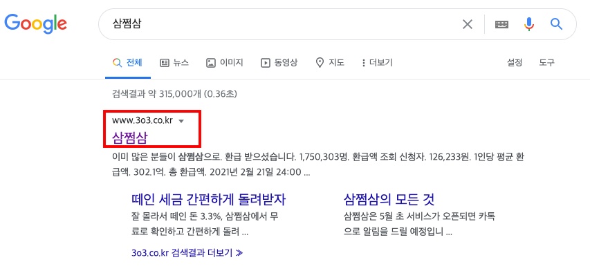가장 먼저 다음, 구글 등 여러분이 선호하는 검색 포털 사이트에 [삼쩜삼] 검색을 해주도록 합니다.