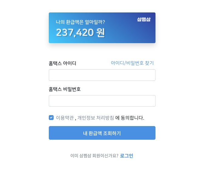 그래서 세금 환급금은 홈택스 통해서 조회가 가능한데 아무래도 복합적인 업무를 처리하다보니 어려울 때가 있습니다. 그때 바로 필요한 것이 삼쩜삼 인데 이렇게 복잡한 과정을 한 번에 처리해주는 기능을 합니다. 그렇다면 자세하게 알아보도록 하겠습니다.