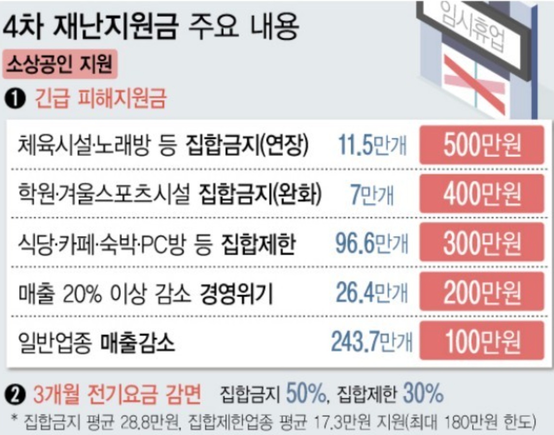 그런데 워낙 기존 1~3차와 비교했을 때 복잡해 보이기도 하여 4차 소상공인 재난지원금 내용 및 신청방법이 헷갈리는데요. 보다 더 자세하고 일목요연하게 정리 하도록 하겠습니다.