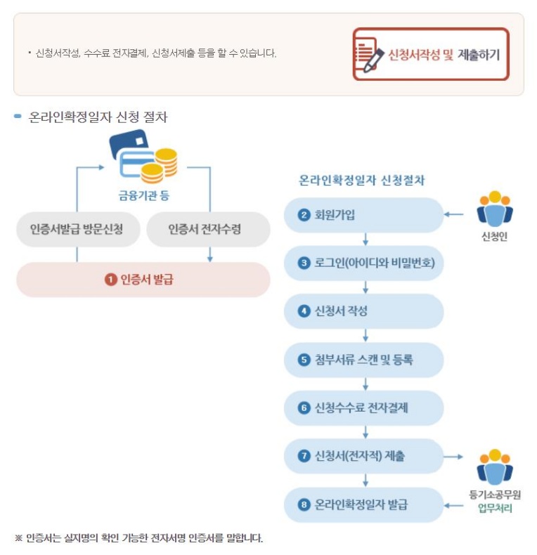 신청할 때 특별한 자격은 전혀 없습니다. 주택 임대차 계약 당사자는 개인과 법인 모두 센터에 방문하지 않아도 온라인에서 신청 가능하며, 또한 공인중개사도 신청할 수 있는데요. 이뿐만 아니라 인터넷 등기소 사용자에 등록된 법무사와 변호사는 자격자 대리로서 당사자를 대리하여 부여 신청 가능합니다. 그러나 자격자 대리인이 아닌 경우에는 다른 사람을 대신해서 온라인으로 신청할 수 없으니 해당 부분은 참고해 주시길 바랄게요.