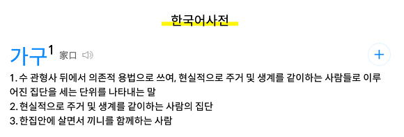일단 가구는 여러가지 의미가 있지만 오늘 알아보는 내용은 다음과 같죠.