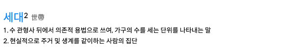 다음으로 세대 또한 사전적 의미를 찾아 보겠습니다.