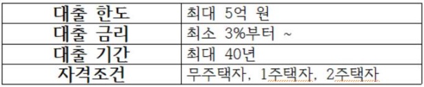 보금자리론의 경우 연 소득 7,000만 원(부부합산 8,500만 원) 이하라는 소득 조건이 있어 제한적이지만 본 상품의 경우 신용도에 문제만 없다면 비교적 쉽게 주담대 받아 볼 수 있습니다.